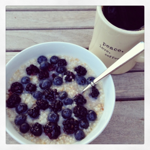 Ladle the oats into a bowl and top with your favorite fixings. I usually stir in a bit of dark or light brown sugar, add in whatever fresh fruit is in season, and then throw in some toasted walnuts and goji berries. You can really throw in just about anything.